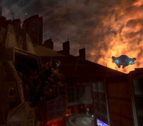 Marine forces are informed by Dare that the Covenant Army is massing beneath the Assault Carrier for an organized retreat. Dozens of ODSTs are launched into Earth's atmosphere in a coordinated drop to infiltrate and capture the Prophet of Regret aboard the Assault Carrier. They pass by a few destroyed Frigates in orbit around the elevator, and begin to enter cloud cover above the city. The Captain then orders the squad to adjust their trajectory and drop locations; sending the ODST's way off of their intended course.